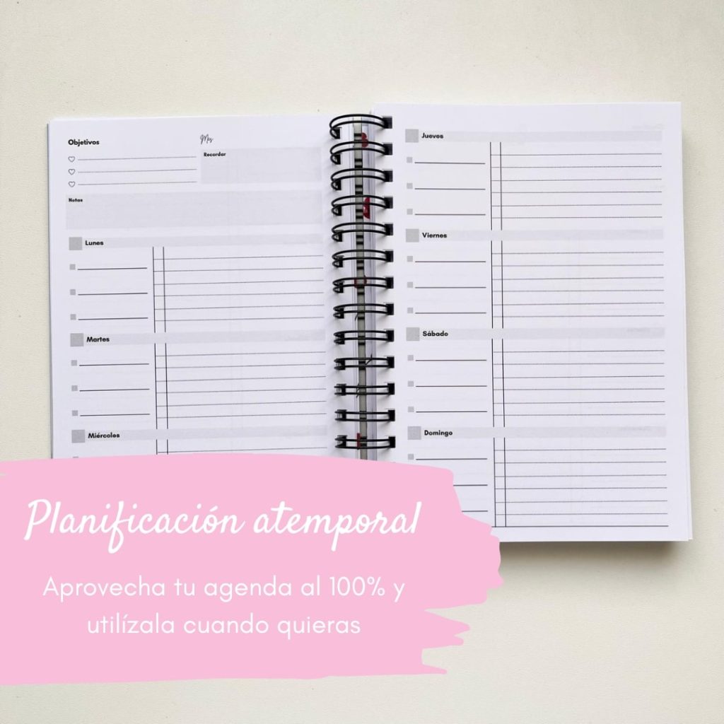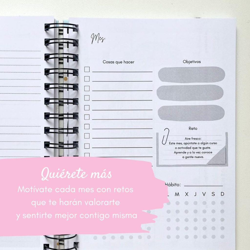 - Planifícate con total libertad y flexibilidad. Tendrás espacio suficiente para planificarte durante 12 meses, empezando cuando quieras. No tienes que esperar al inicio de un nuevo año para aprovechar sus beneficios. ¿Que te vas de vacaciones? ¡Disfruta y desconecta! Porque a la vuelta podrás retomar tu agenda por donde te hayas quedado sin perder ninguna página 👏
