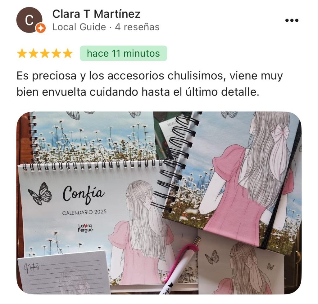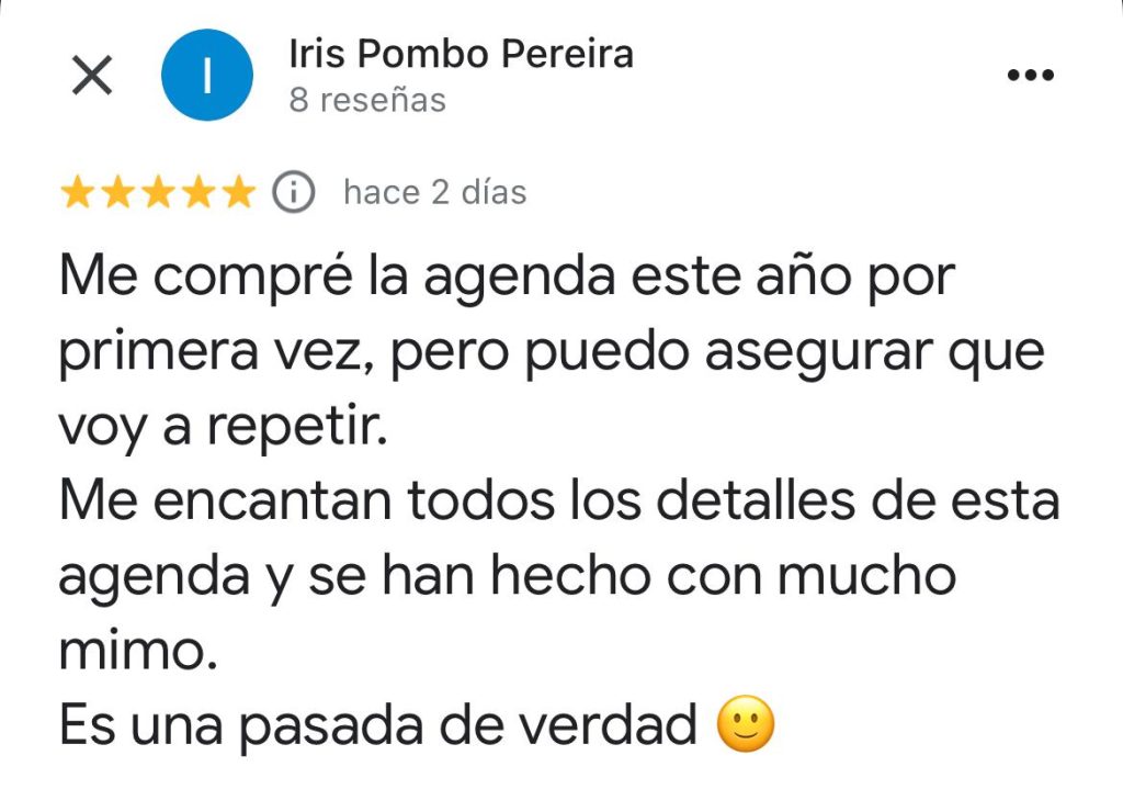Me compré la agenda «confía». Es preciosa, tratada con mucho cariño y llena de pequeños detalles. Repetiré compra sin falta.