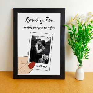 - Adjunta la foto que quieras incluir e indica la frase y/o nombres para personalizar.